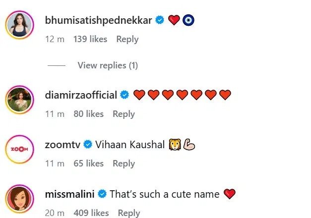 इस खास ऐलान के बाद सोशल मीडिया पर बधाइयों की बाढ़ आ गई। अभिनेत्री परिणीति चोपड़ा, सिंगर श्रेया घोषाल, शिबानी दांडेकर, दीया मिर्जा और भूमि पेडनेकर समेत कई सितारों ने पोस्ट पर प्यार भरे संदेश और दिल वाले इमोजी के जरिए अपनी शुभकामनाएं दीं। फैंस भी इस पोस्ट को खूब पसंद कर रहे हैं।