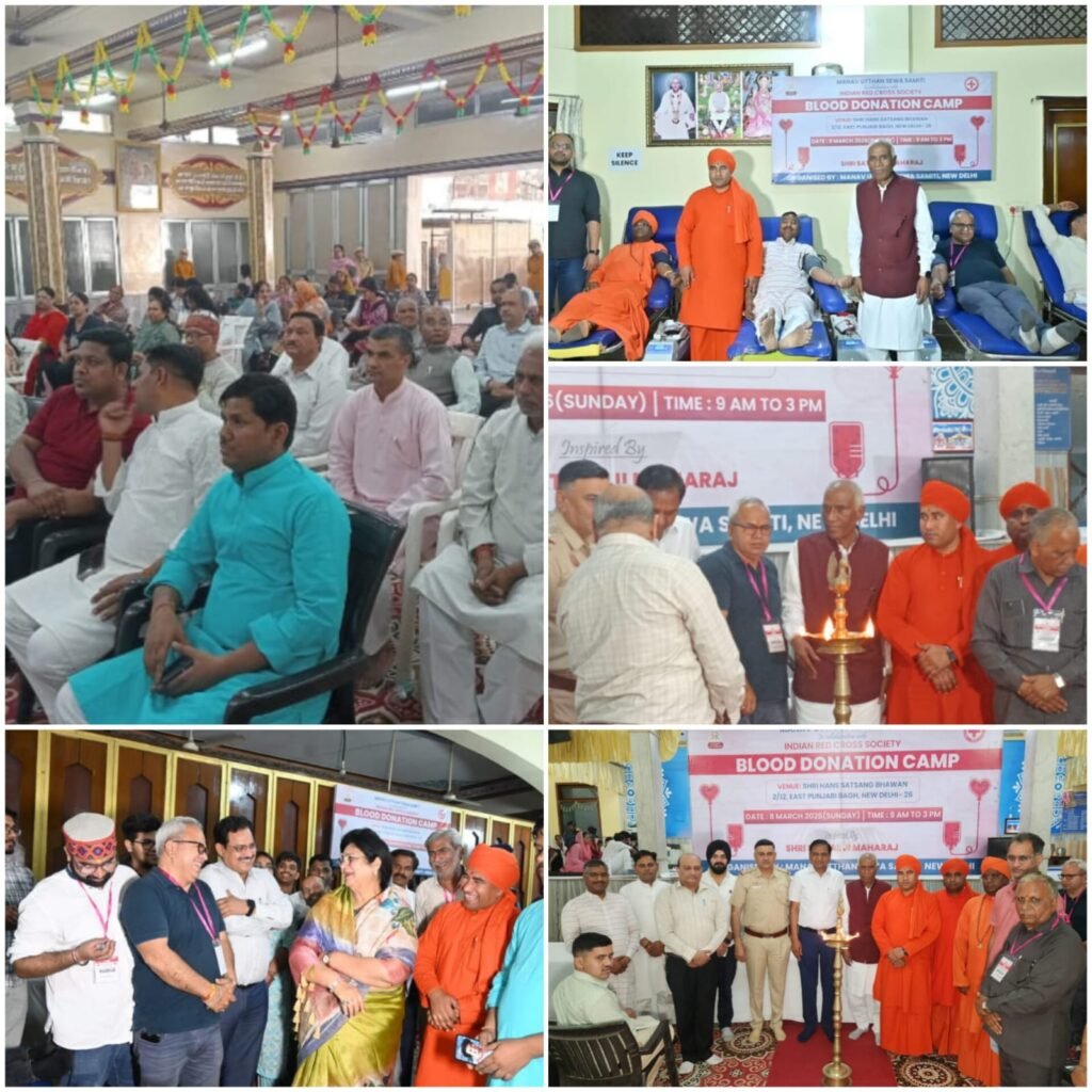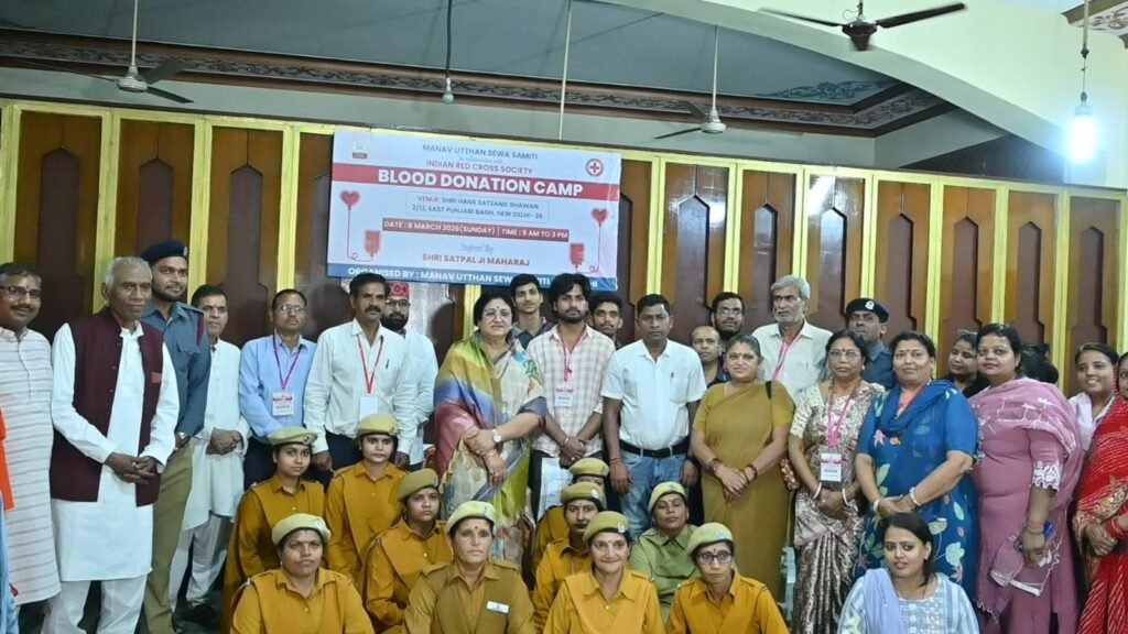 नई दिल्ली/उमा सक्सेना/-  समाज सेवा और मानव कल्याण की भावना को आगे बढ़ाते हुए पंजाबी बाग स्थित श्री हंस सत्संग भवन में रविवार को एक विशाल रक्तदान शिविर का आयोजन किया गया। यह शिविर सदगुरुदेव श्री सतपाल जी महाराज की प्रेरणा से मानव उत्थान सेवा समिति और इंडियन रेड क्रॉस सोसाइटी के संयुक्त सहयोग से आयोजित किया गया। कार्यक्रम की शुरुआत दीप प्रज्वलन के साथ हुई, जिसके बाद बड़ी संख्या में लोगों ने उत्साह के साथ रक्तदान किया। इस शिविर में करीब 83 लोगों ने स्वेच्छा से रक्तदान कर जरूरतमंद मरीजों की सहायता के लिए योगदान दिया।
