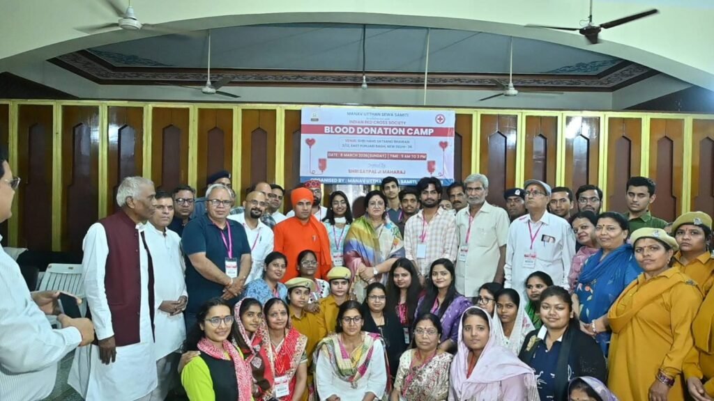 नई दिल्ली/उमा सक्सेना/-  समाज सेवा और मानव कल्याण की भावना को आगे बढ़ाते हुए पंजाबी बाग स्थित श्री हंस सत्संग भवन में रविवार को एक विशाल रक्तदान शिविर का आयोजन किया गया। यह शिविर सदगुरुदेव श्री सतपाल जी महाराज की प्रेरणा से मानव उत्थान सेवा समिति और इंडियन रेड क्रॉस सोसाइटी के संयुक्त सहयोग से आयोजित किया गया। कार्यक्रम की शुरुआत दीप प्रज्वलन के साथ हुई, जिसके बाद बड़ी संख्या में लोगों ने उत्साह के साथ रक्तदान किया। इस शिविर में करीब 83 लोगों ने स्वेच्छा से रक्तदान कर जरूरतमंद मरीजों की सहायता के लिए योगदान दिया।