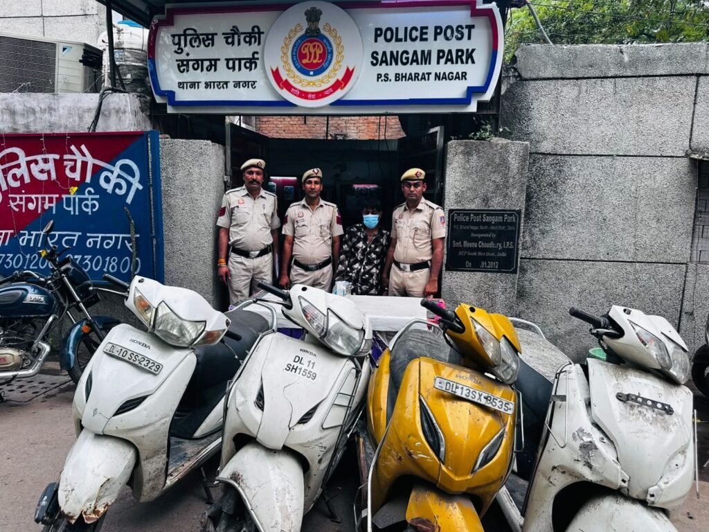 नई दिल्ली/उमा सक्सेना/-  उत्तर-पश्चिम दिल्ली के संगम पार्क इलाके में पुलिस ने बड़ी कार्रवाई करते हुए एक कुख्यात वाहन चोर को गिरफ्तार किया है। गश्त के दौरान पुलिस टीम ने एक युवक को संदिग्ध परिस्थितियों में स्कूटी के साथ घूमते हुए देखा। जब उसे रोकने का संकेत दिया गया तो वह मौके से भागने लगा, लेकिन पुलिस ने पीछा कर उसे पकड़ लिया।