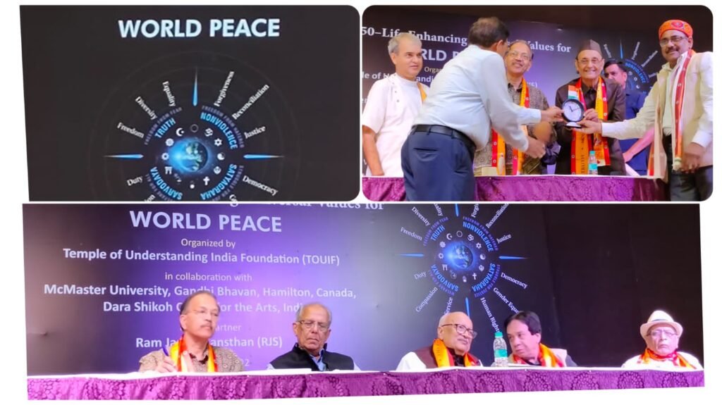 नई दिल्ली/– ऐसे समय में जब दुनिया सबसे बड़े संकट में है, जैसा कि संयुक्त राष्ट्र के महासचिव एंटोनियो गुएट्रेस द्वारा घोषित किया गया था, एक अनूठा सम्मेलन थाः “गांधी एट 150 – विश्व शांति के लिए सार्वभौमिक मूल्यों का जीवन बढ़ाना“ आयोजित किया गया। इस विश्व शांति सम्मेलन का डा. कर्ण सिंह ने उद्घाटन किया। मैकमास्टर यूनिवर्सिटी, कनाडा के प्रो. रमा शंकर सिंह के सहयोग से टेम्पल ऑफ अंडरस्टैंडिंग इंडिया फाउंडेशन द्वारा; विश्व युवा केंद्र में दारा शिकोह सेंटर फॉर द आर्ट्स और राम जानकी संस्थान के सहयोग से आयोजन किया गया।