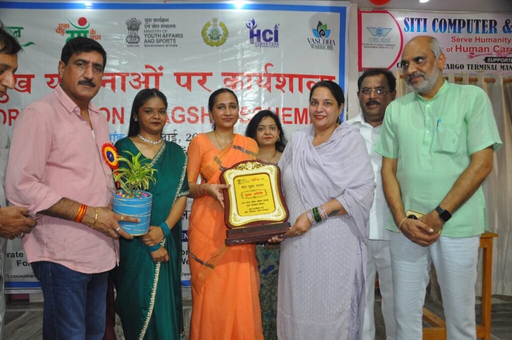 जिला युवा अधिकारी श्रीमती अंजली चौधरी ने सभी अतिथियों एवं युवाओं का संबोधन करते हुए मेरा युवा भारत के बारे में बताया एवं कार्यशाला में दोनों योजनाओं के अंतर्गत किस प्रकार की जानकारी दी जाएगी तथा यह भी बताया कि 1500 वृक्ष लगा कर एवं वितरण करके दिचाऊ कलां में इस कार्यक्रम को सफल बनाने का प्रण मेरा युवा भारत का है।